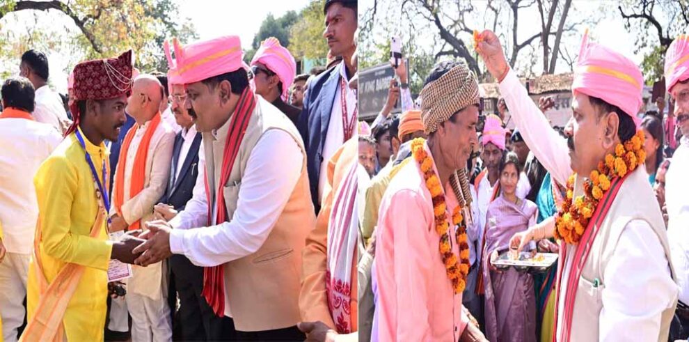 सरदार पटेल मैदान में आयोजित इस समारोह में उपमुख्यमंत्री विजय शर्मा शामिल वधुओं के परिजन बनकर शामिल हुए। इस अवसर में उन्होंने बारात का स्वागत करने के साथ सभी को परघाते हुए समधी की तरह सभी का अभिवादन किया। वरों एवं उनके परिजनों का फूल माला के साथ स्वागत करते हुए सभी का गले लगाकर अभिनंदन किया। उन्होंने परिणय सूत्र में बंधकर नए जीवन की शुरुआत करने वाले सभी नवदंपतियों को बधाई एवं शुभकामनाएं दीं। कार्यक्रम में पंडित द्वारा वर-वधुओं को सात वचनों का संकल्प दिलाया गया, जिसके साथ ही विवाह की रस्में संपन्न हुईं। उपमुख्यमंत्री शर्मा ने मंच पर पहुंचकर सभी नवदंपतियों को आशीर्वाद प्रदान किया और शासन की ओर से प्रत्येक जोड़े को 35-35 हजार रुपये की सहायता राशि का चेक और सामग्री भेंट किया।