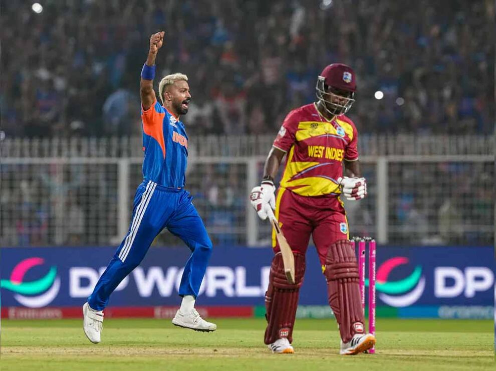 पहले बल्लेबाजी करने उतरी वेस्टइंडीज को रोस्टन चेज और शाई होप ने दमदार शुरुआत दिलाई। दोनों के बीच पहले विकेट के लिए 53 गेंद में 68 रन की साझेदारी हुई। होप 33 गेंद में 32 रन बनाकर वरुण चक्रवर्ती का शिकार बने। बुमराह ने शिमरन हेटमायर (27) और रोस्टन चेज (40) को एक ही ओवर में पवेलियन का रास्ता दिखाया। हार्दिक पांड्या ने रदरफोर्ड को आउट किया। इसके बाद पॉवेल और होल्डर के बीच पांचवें विकेट के लिए 35 गेंद में 76 रन की साझेदारी हुई। रोवमैन पॉवेल ने 19 गेंद में 34 और जेसन होल्डर ने 22 गेंद में 37 रन बनाे। भारत के लिए बुमराह ने तीन, हार्दिक और वरुण को एक एक सफलता मिली।