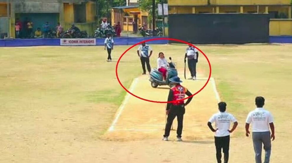 इसलिए स्कूटी लेकर पिच पर पहुंची महिला